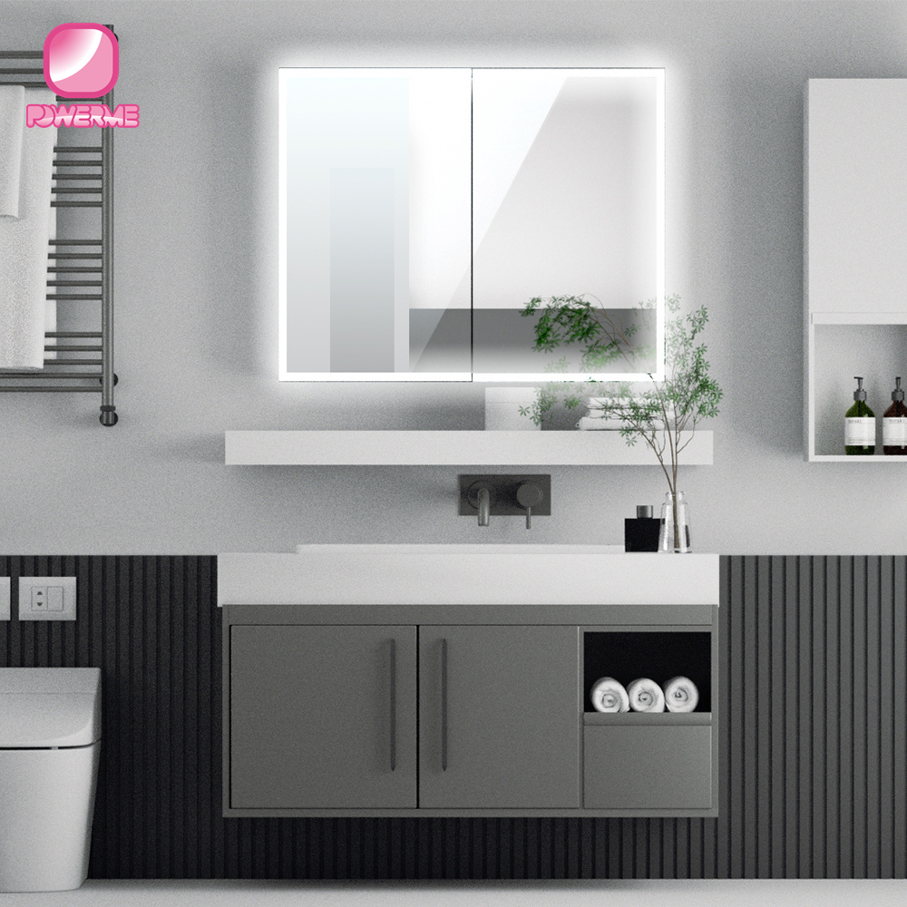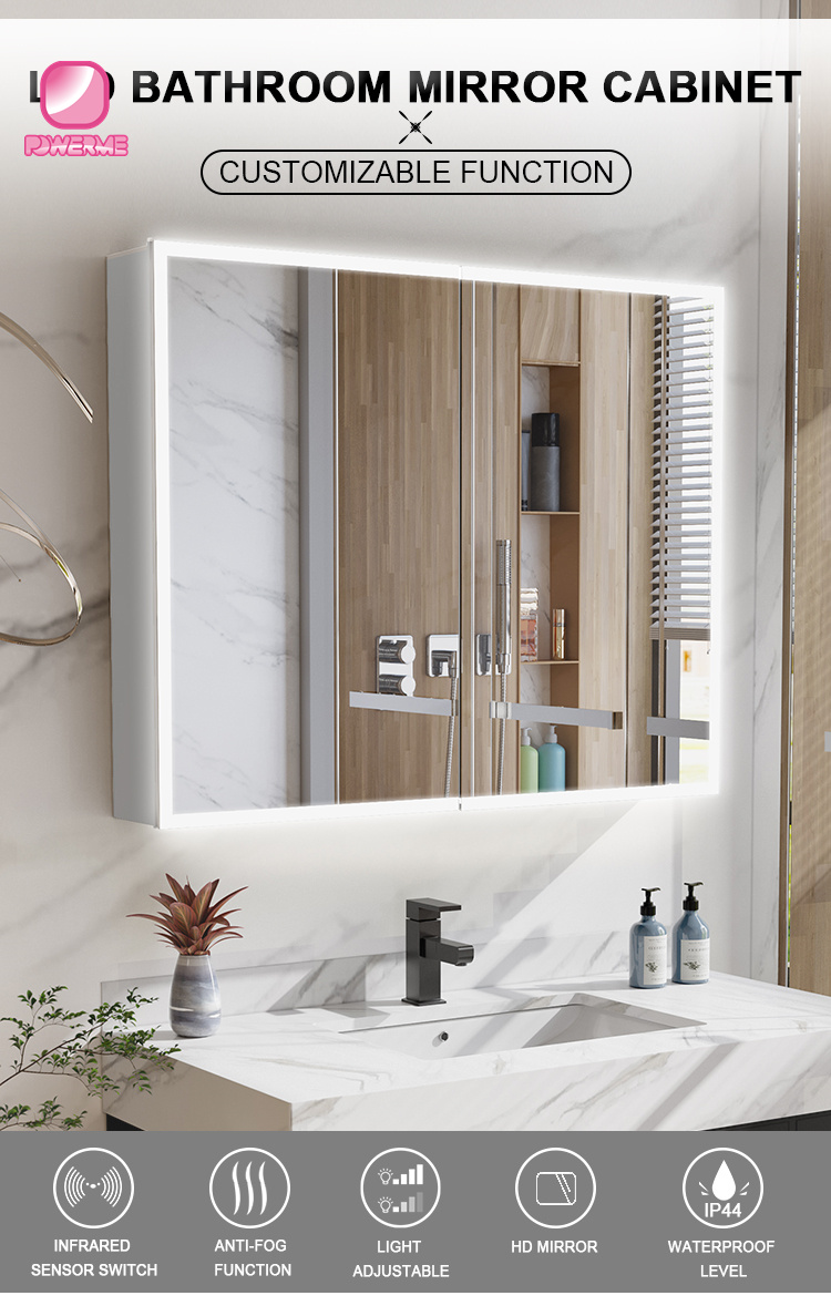 You Location:Home ? Products ? LED Mirrored Cabinet ? PC-A102 Aluminum Wall Mounted Storage Cabinets for Bathroom