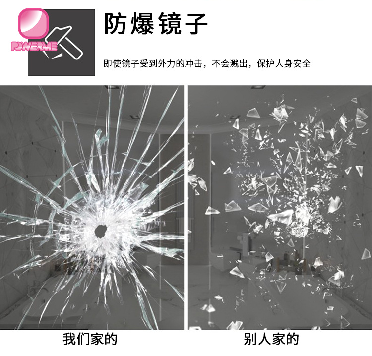 2.環保無銅鏡面,浮化玻璃,帶有拋光邊緣保護手指,5毫米厚度,適用于高濕度位置使用