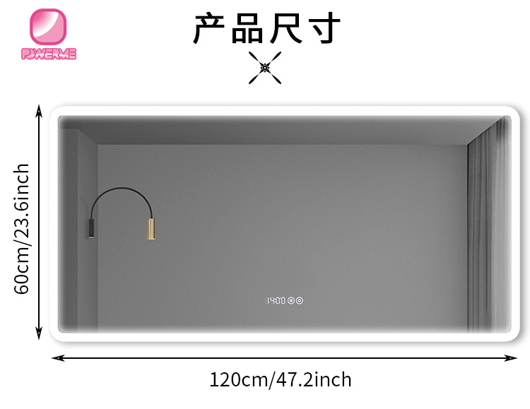 4.鏡面雙鍵觸摸帶時鐘開關,無極調節燈光亮度